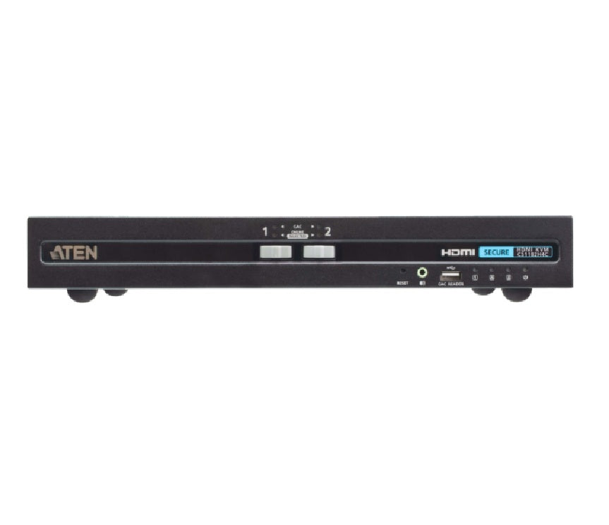 The ATEN CS1182H4C is a high-security, 2-port USB HDMI Secure KVM Switch with Common Access Card (CAC) support, specifically engineered for mission-critical defense, intelligence, and government installations. As of 2026, it remains a primary solution for isolating sensitive networks and preventing data leakage between connected computers of different security classifications.