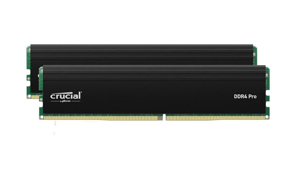 The Crucial CP2K32G4DFRA32A is a 64GB DDR4 desktop memory kit that operates at 3200 MHz, designed to boost system performance for multitasking and data-intensive applications. The kit includes two 32 GB unbuffered, non-ECC UDIMM modules with a low-profile aluminum heat spreader.