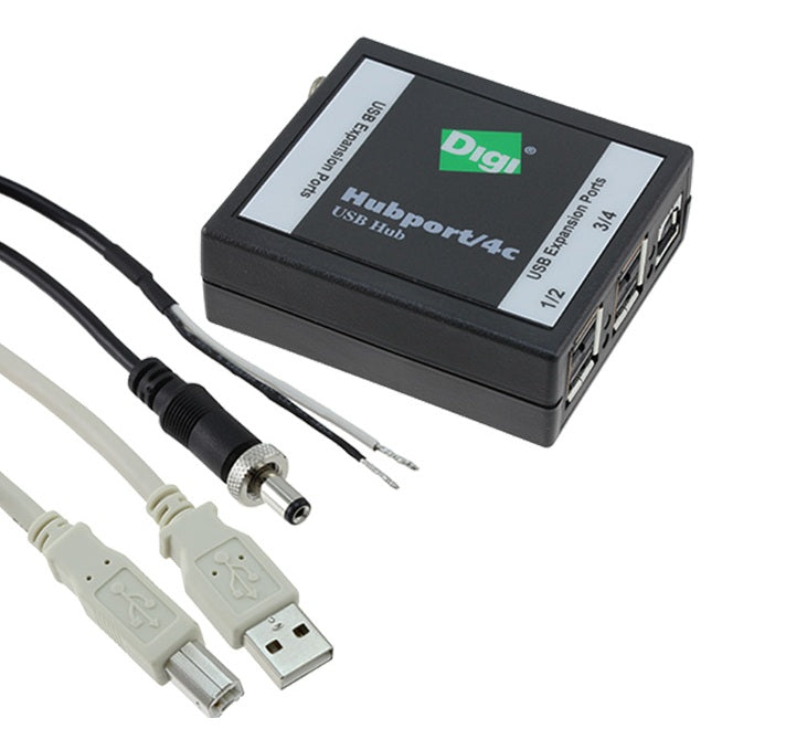 The "301-1010-44 spec" refers to the Digi International Hubport/4c DC 5.5-30V, a 4-port USB 2.0 hub designed for industrial environments. It features a wide 5.5-30V DC power input range, 500mA of power per downstream port, individual port power management, and a compact, rugged chassis. The "switched USB architecture" ensures maximum performance across all ports simultaneously, and it is compatible with various operating systems like Windows and Linux