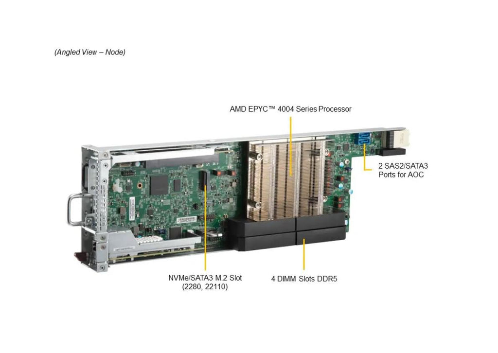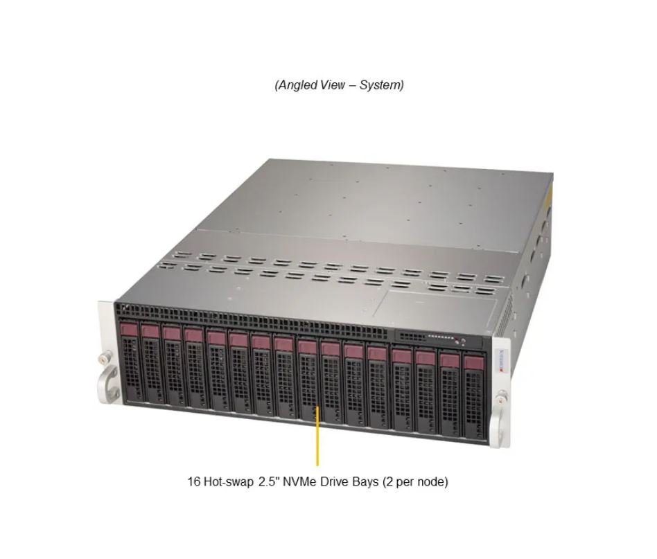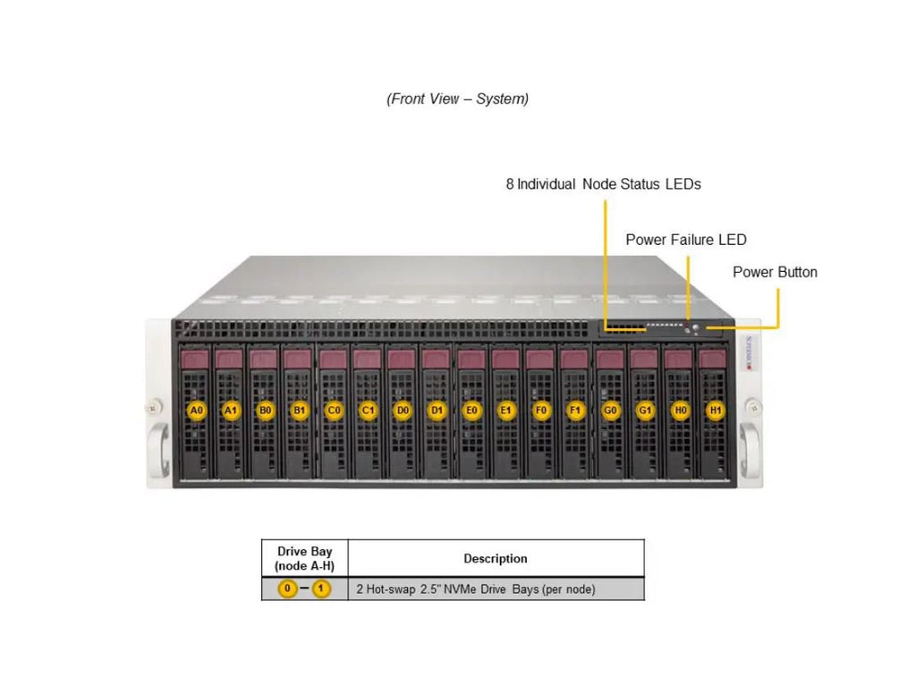 Drive Bays (per Node): 2 front fixed 3.5"/2.5" NVMe/SAS/SATA drive bays
