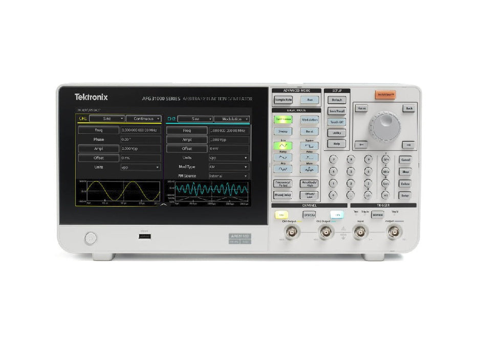The Tektronix AFG31252 AFG31000-Series 250MHz is a high-performance, dual-channel Arbitrary Function Generator with a 250 MHz bandwidth and a 1 GSa/s sampling rate, featuring InstaView real-time waveform monitoring technology and a large touchscreen interface.