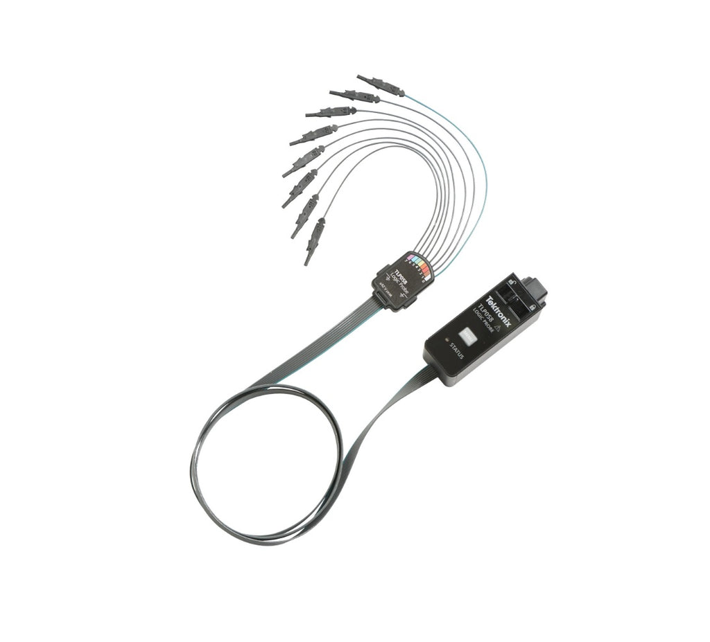 The Tektronix TLP058 is an 8-channel, general-purpose logic probe used with Tektronix 4, 5, and 6 Series Mixed Signal Oscilloscopes (MSOs). It allows a single analog input channel on these oscilloscopes to be converted into eight digital logic channels using the built-in FlexChannel technology