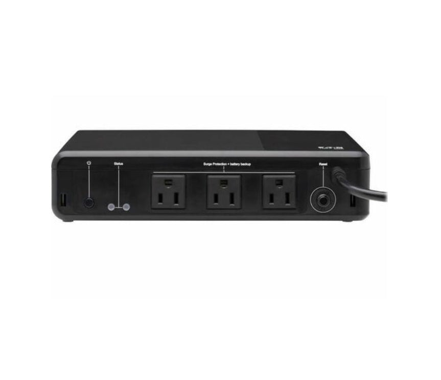 The Eaton Tripp Lite Series BC350R 350VA 210W 120V Standby UPS is designed to protect connected equipment from blackouts, brownouts, overvoltages, surges, and disruptive line noise. It is a low-maintenance, easy-to-use solution for devices such as desktop computers, Wi-Fi routers, and point-of-sale systems.