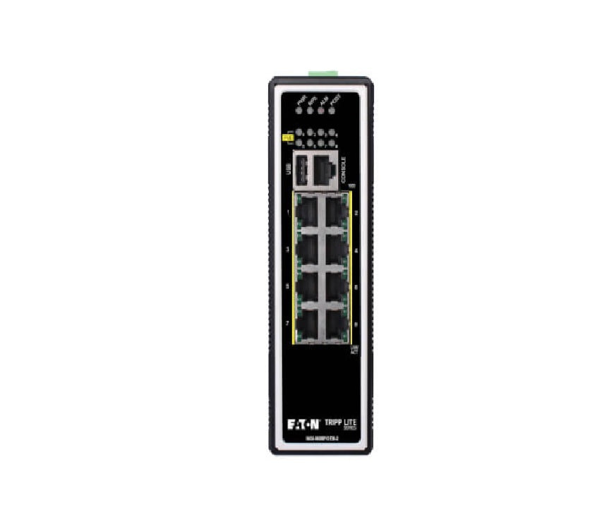 The Eaton Tripp Lite NGI-M08C2 is an 8-port managed industrial Gigabit Ethernet switch with two SFP uplink slots, designed for use in harsh and demanding environments. Its ruggedized design and wide temperature range make it ideal for industrial automation, government, and outdoor applications.