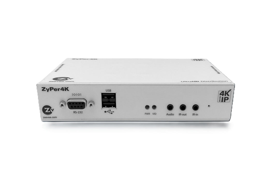 The ZeeVee Z4KDECC3U ZyPer4K HDMI 2.0 Copper Decoder with USB is an AVoIP decoder that supports uncompressed 4K video distribution over a 10Gb Ethernet network with zero latency.